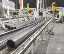 我公司自行開(kāi)發(fā)的數(shù)控開(kāi)卷斜剪生產(chǎn)線,直接從鋼卷到等腰梯形板輸出,自動(dòng)化程度高,速度快。在非常成熟的數(shù)控雙機(jī)聯(lián)動(dòng)折彎?rùn)C(jī)的基礎(chǔ)上,我們做了很多改進(jìn),使得機(jī)器專(zhuān)門(mén)適合于快速高效生產(chǎn)路燈桿。應(yīng)客戶(hù)的要求,我公司自行開(kāi)發(fā)了數(shù)控電門(mén)切割機(jī),自動(dòng)底板焊接機(jī),自動(dòng)燈桿鉆孔機(jī),數(shù)控電力桿大型自動(dòng)直縫焊機(jī)等,并且不斷優(yōu)化改進(jìn),適合燈桿行業(yè)的使用情況,大大改變手工作業(yè)的情況,提高桿子生產(chǎn)的品質(zhì)和效率,降低制造成本。